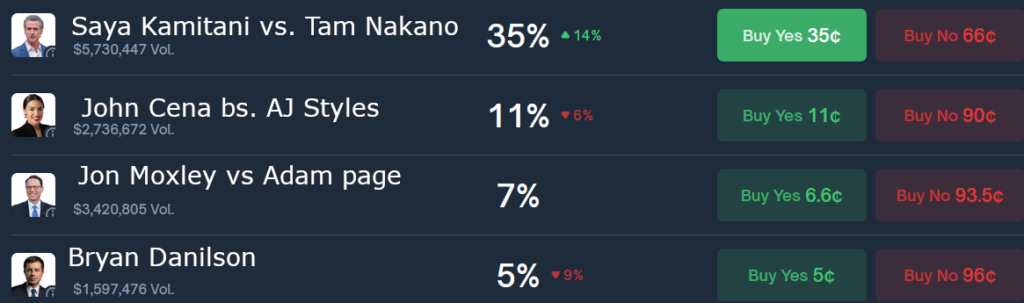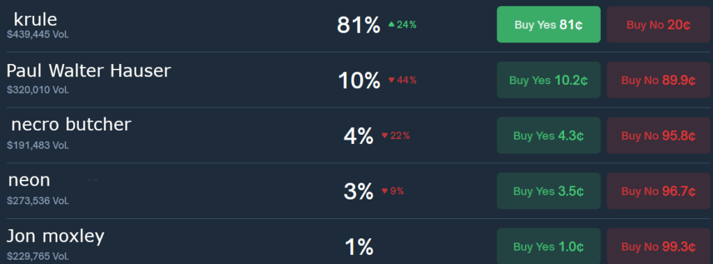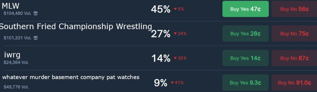 Polymarket celery shows that Krule is the bookies favourite right now, and while it’s hard to argue against Krule’s case. I do think there is potentially some money to be made betting on necro the ‘good wrestler, better person’ case is tough to dismiss. Anyhow no matter what happens it’s clear the real winner is the fans.